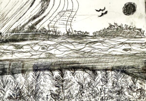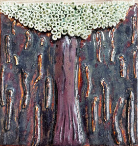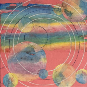 acrylic, ink and collage on wood panel