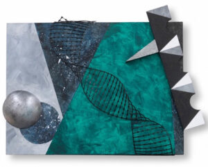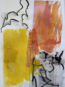 acrylic, ink and collage on wood panel
